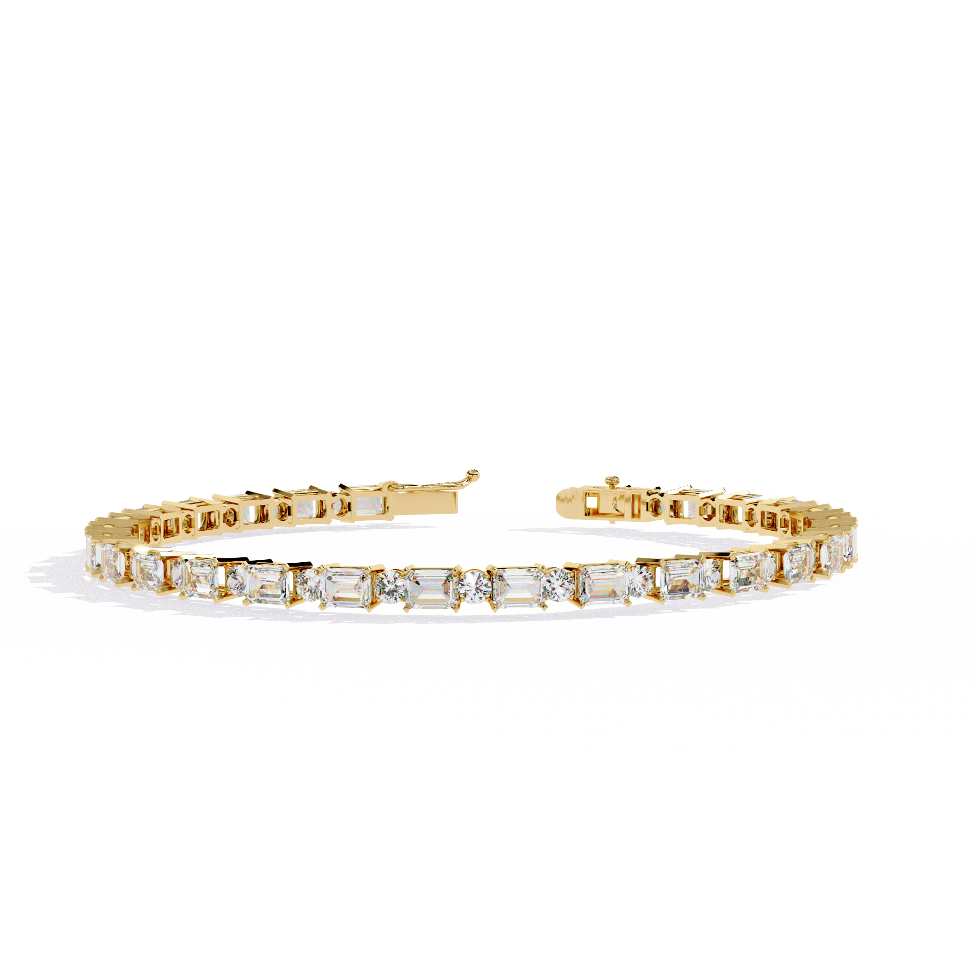 This sophisticated bracelet alternates sparkling round and emerald-cut lab grown diamonds for a dynamic, modern twist on the classic tennis style. Set in 9kt, 9kt, 14kt & 18kt, or 18kt Yellow, White & Rose, each ethically sourced diamond is expertly set for maximum brilliance and clean linear elegance. Stunning in its geometric precision, this bracelet is ideal for collectors seeking a distinctive, timeless statement of luxury and ethical craftsmanship.