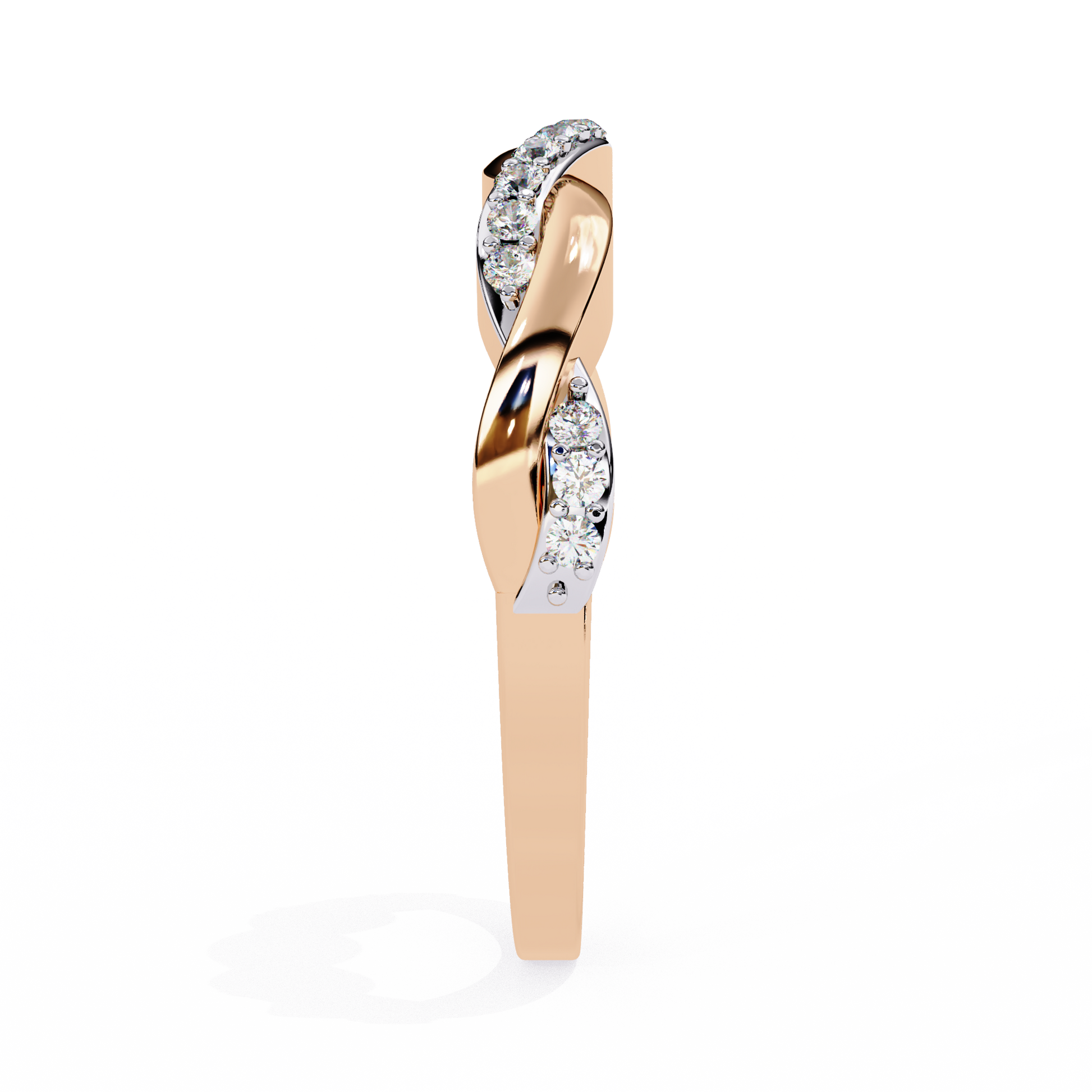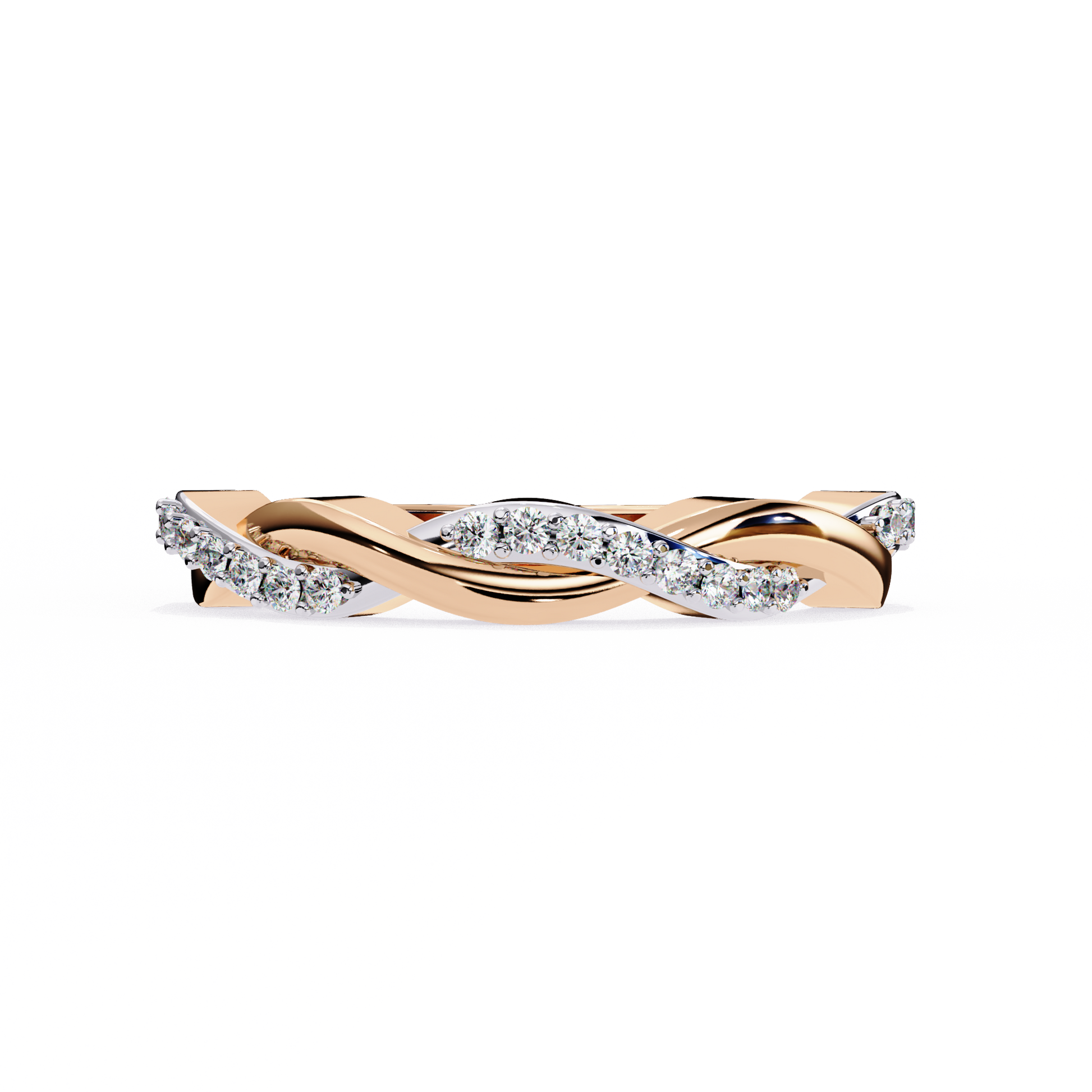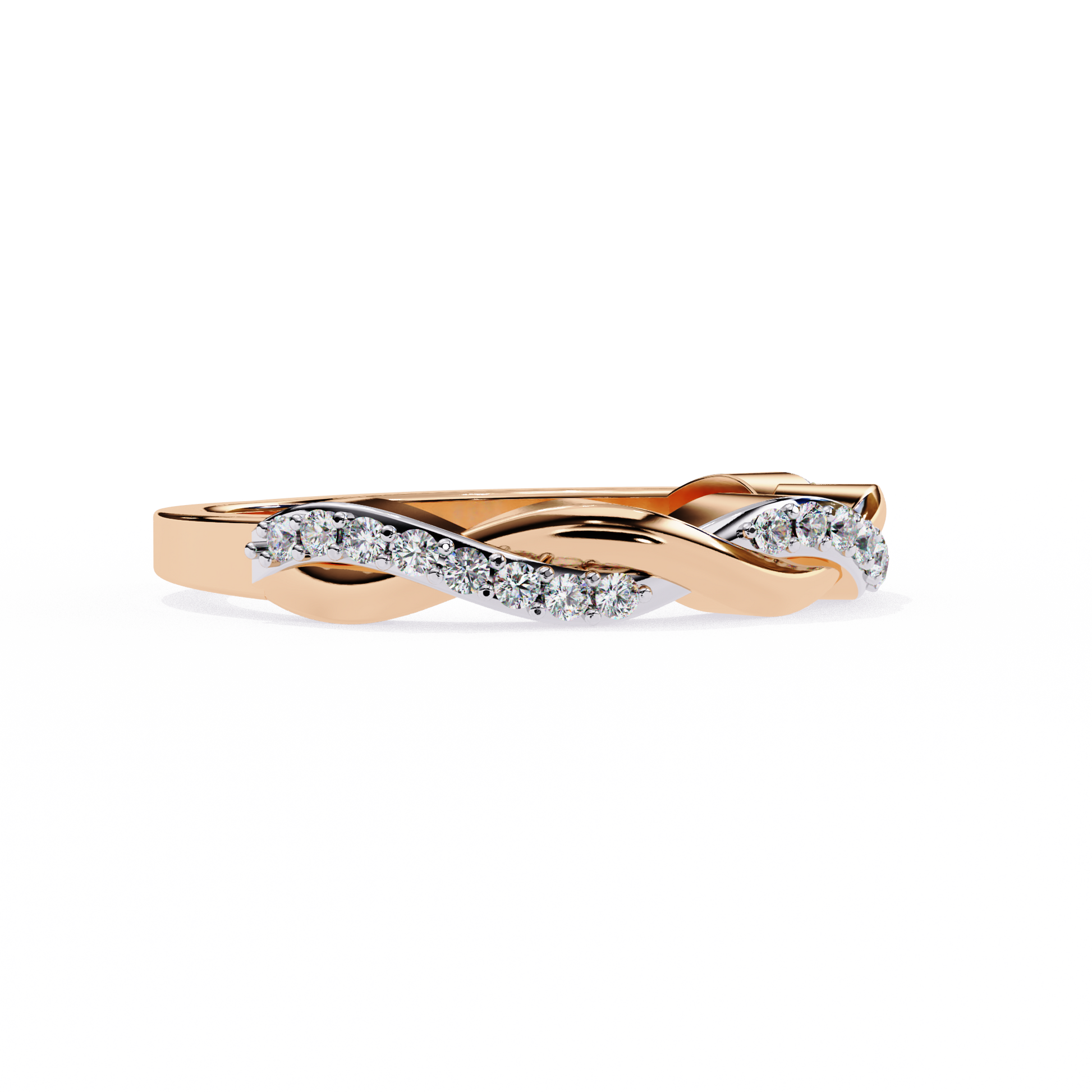 The Ophira Eternal Weave Lab Grown Diamond Ring features an elegant twisted design in warm 14kt rose gold, with one strand fully pavé-set in lab grown diamonds to create a seamless interlacing effect. This gracefully contoured band symbolizes unity and infinite connection, making it ideal for stacking, marking milestones, or as an everyday signature. Crafted for sustainable brilliance and timeless allure, this ring adds refined romance to any collection.