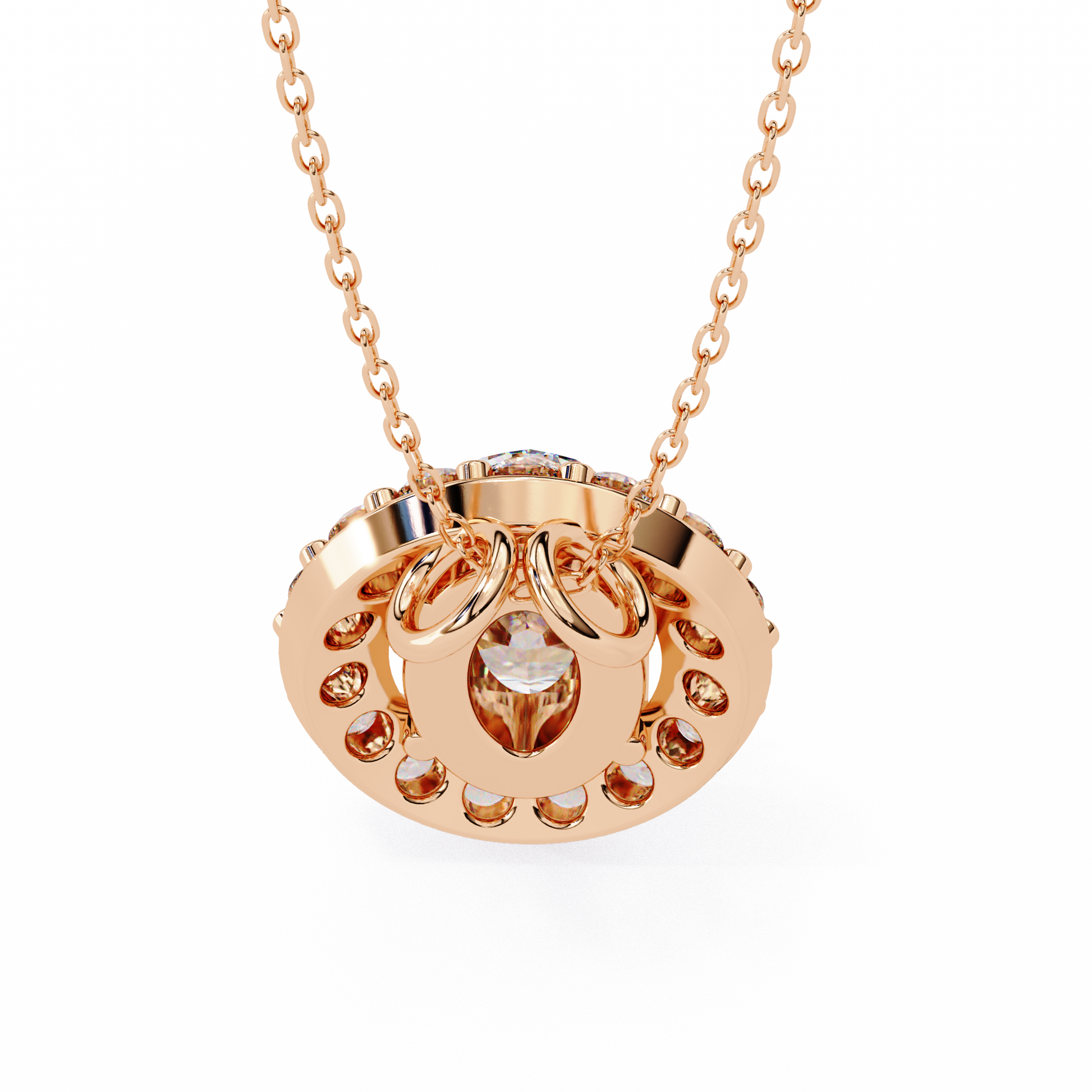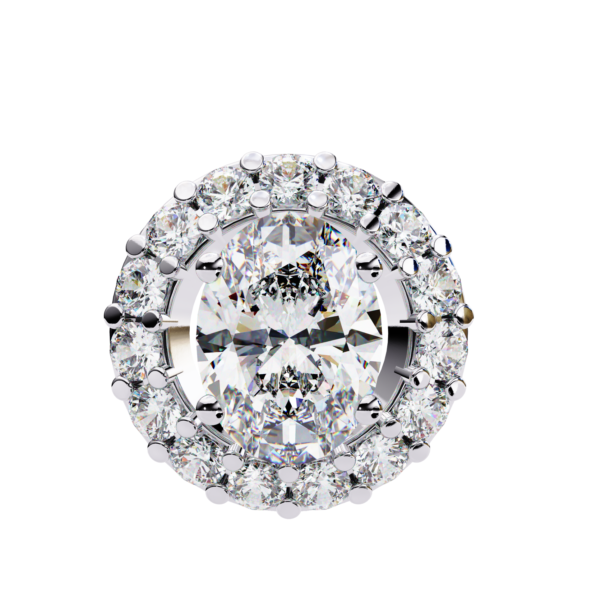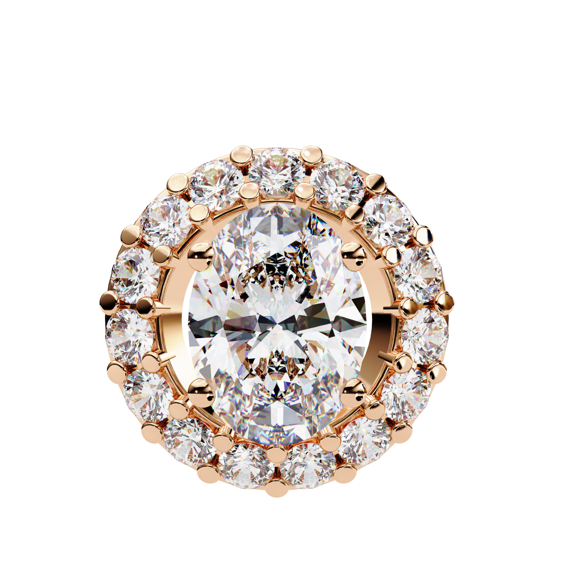 A luminous oval lab grown diamond is set at the center of this regal pendant, surrounded by a radiant halo of round lab grown diamonds in 9kt, 9kt, 14kt & 18kt, or 18kt gold. The elegant cluster setting amplifies both size and sparkle, creating a vintage-inspired silhouette with contemporary ethical brilliance. Crafted for maximal glamour, this pendant is ideal for marking life’s most cherished occasions.