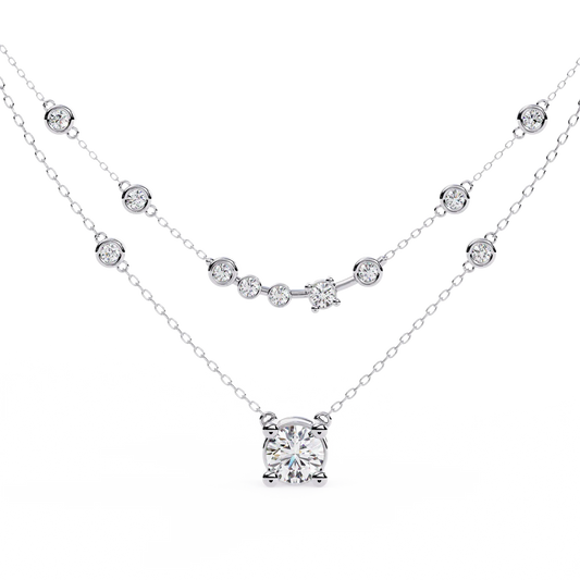 Bezel Duo Layered Solitaire Lab Grown Diamond Necklace