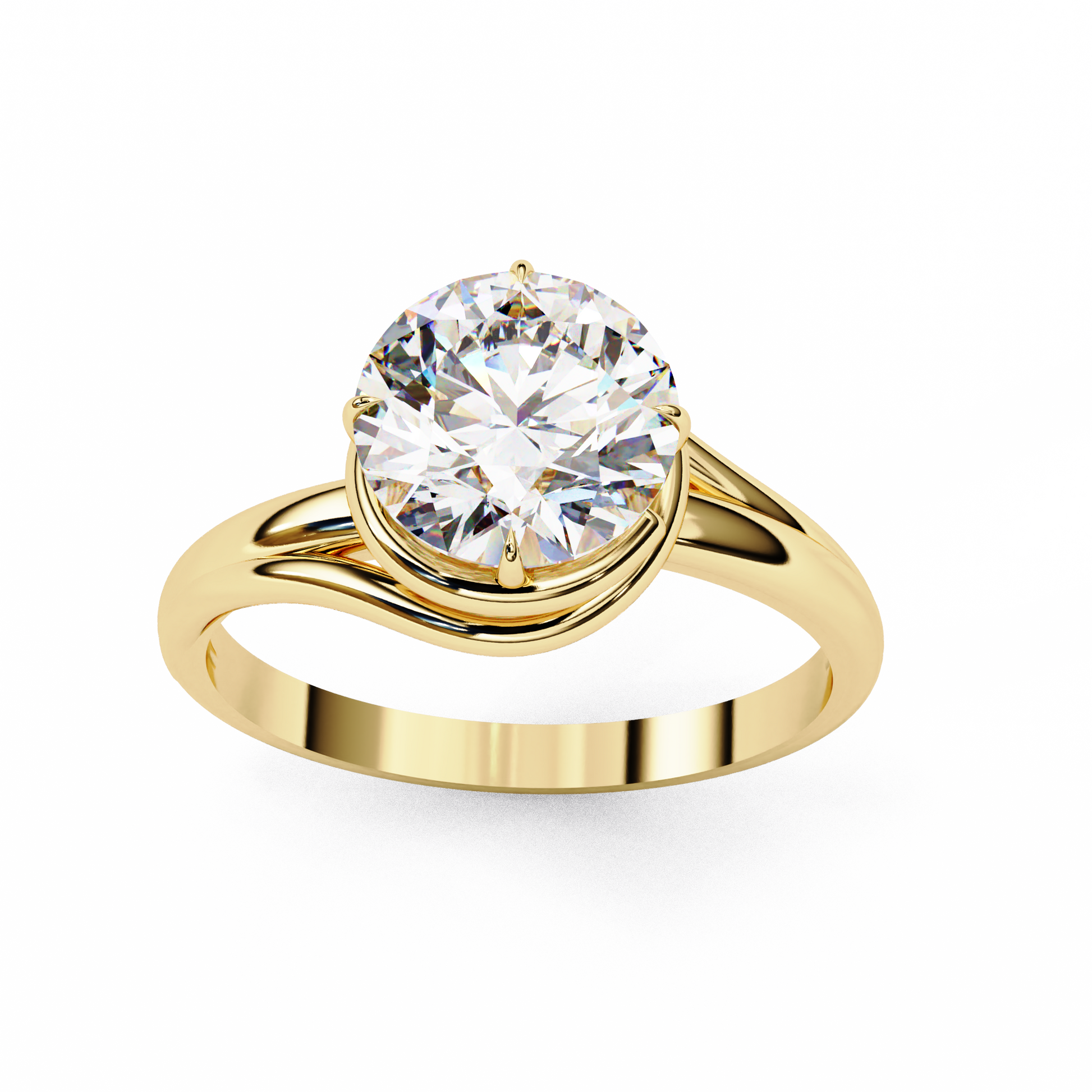 This distinctive design features a brilliant lab-grown round cut diamond, elegantly secured in a four-prong setting. The polished 14 kt rose gold band gracefully spirals beneath the center stone, creating a captivating twist detail that symbolizes unity and eternal connection. Both bold and delicate, the open gallery securely elevates the diamond, allowing maximum brilliance and visual intrigue from every angle. Effortlessly chic, this solitaire is perfect for those who love a modern take on timeless sophistication in the Ophira collection.